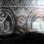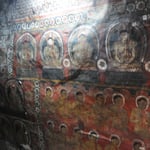 Die Malereien beschreiben das Leben Buddhas, unter anderem Buddhas Versuchung durch den Dämon Mara sowie Buddhas erste Predigt.