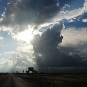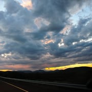 I drove from El Paso In Texas into the Rain in the Guadalupe Mountains in New Mexico. On our Way back we saw the Storm and Rain coming over El Paso. The Rain was so heavy that we had a big flooding, but a very exiting Sky. I love this really wide view and the clouds.